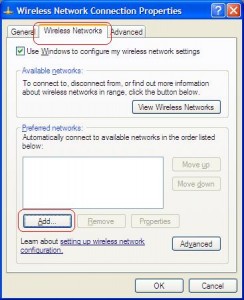 5. Kembali lagi ke tab ‘wireless networks’ , kemudian klik tombol ‘Add..’ pada bagian bawah
