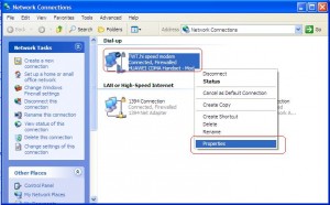 2. Cari Wireless Network Connection dan klik kanan kemudian pilih properties