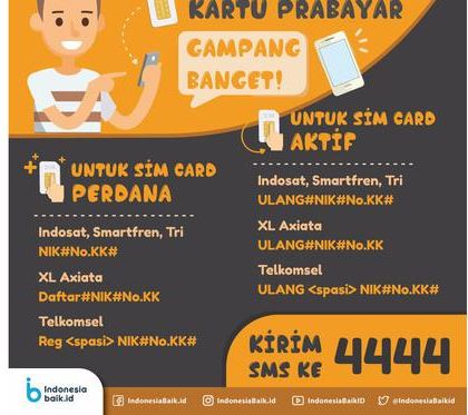 NIK#NomorKK#. Format pengguna XL Axiata adalah Daftar#NIK#Nomor KK dan format Telkomsel adalah Reg (spasi) NIK#NomorKK.